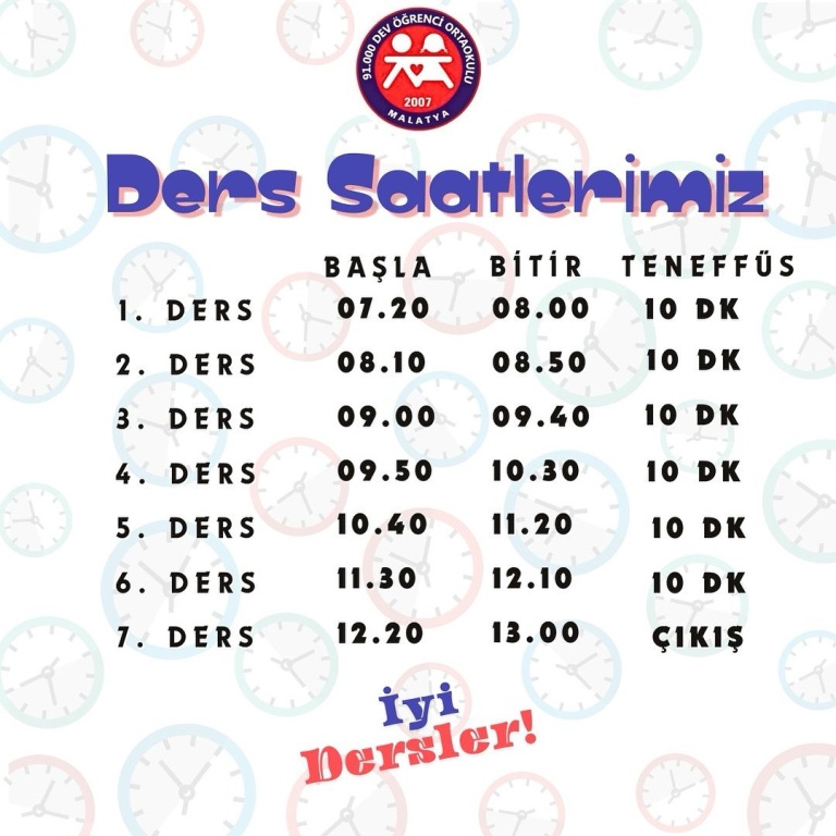 2025-2026 Eğitim Öğretim Yılı Ders Saatlerimiz
